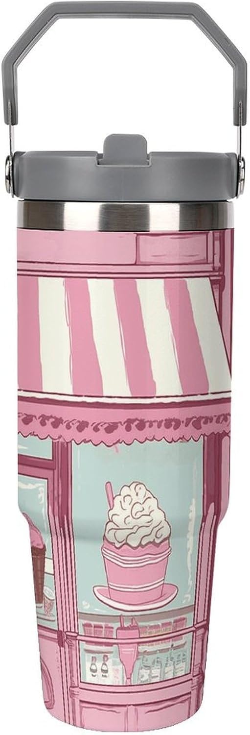 Our Ice Cream Store Pink travel water bottle is made of food-grade stainless steel. The wide mouth design makes it easy to clean and add ice, and the powder-coated exterior is non-slip and durable, ensuring driving safety.Whether you prefer sipping or quenching your thirst, this personalized insulated mug has you covered. Featuring a splash-proof straw design, a sealing ring securely holds the reusable straw, and a drinking spout and full-coverage lid for enhanced leak-proof performance, this mug allows you to easily carry ice water to work, meetings, the gym, or on trips.You can give it to your friends and family as a birthday, Mother's Day, Father's Day, New Year's, Thanksgiving, and holiday gift. It's a thoughtful present.