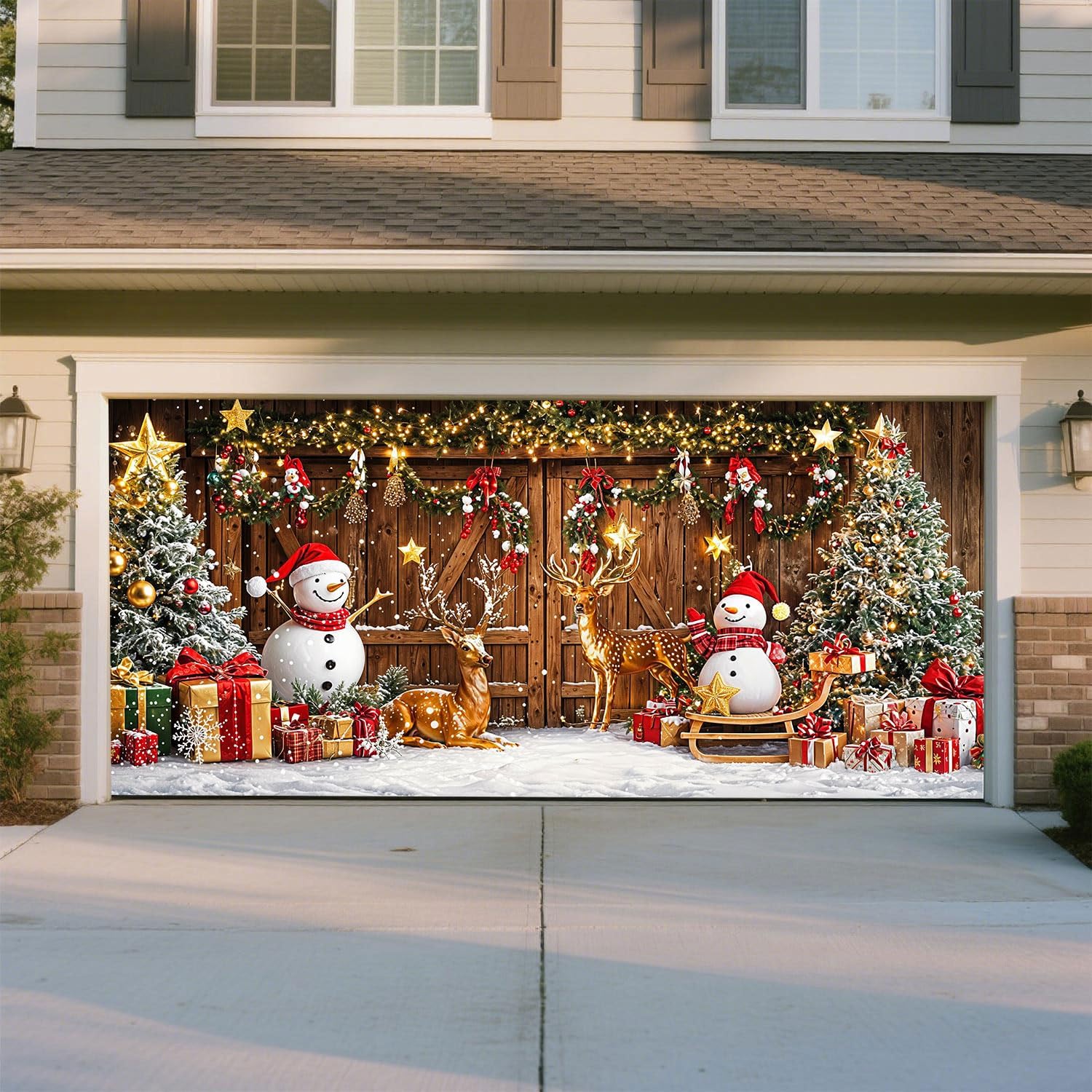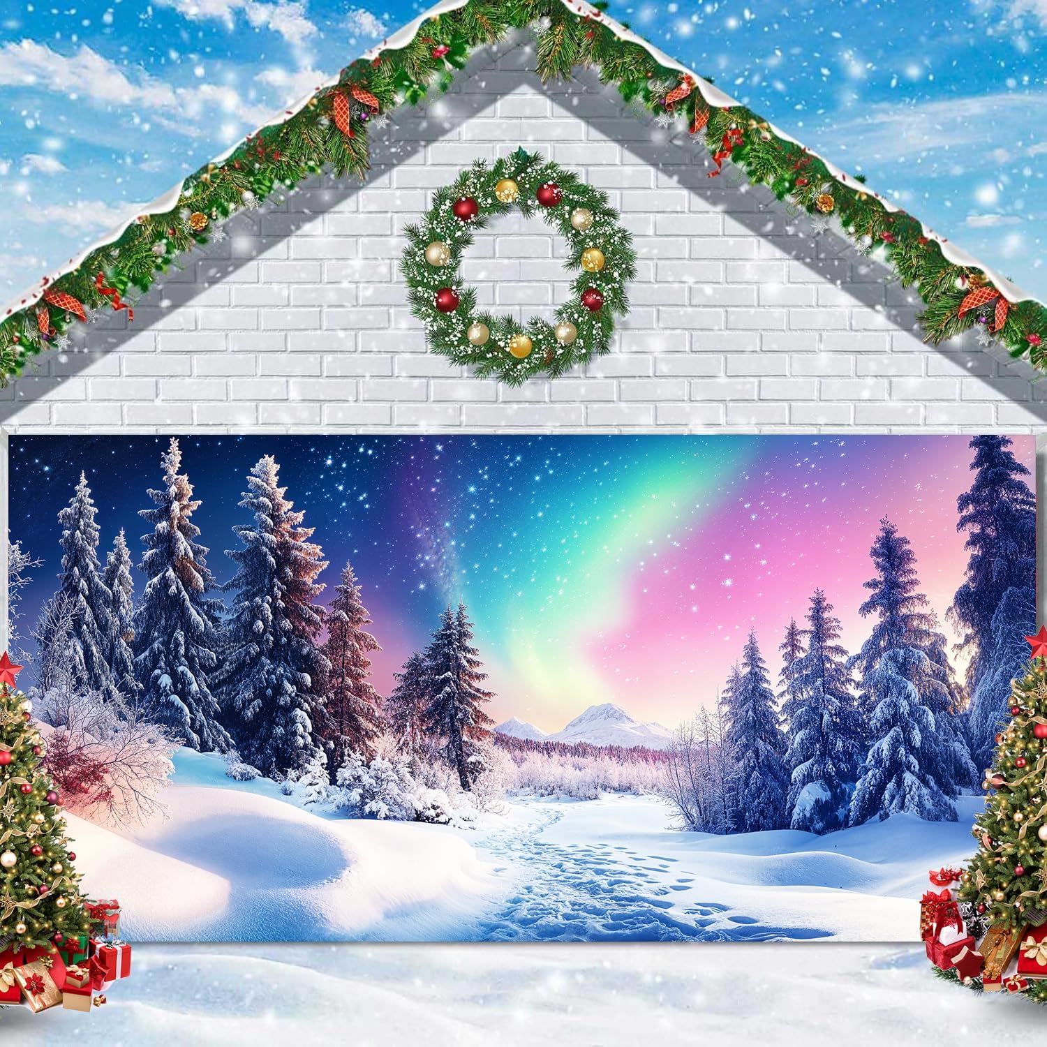 Features:Amidst the functionality, our party garage door cover adds a decorative sense to your garage door. It can uplift the appeal of your home, adding character and brightness. It turns a bland garage door into an elegant piece of art, enhancing the overall visual appeal of your living space.It makes a delightful present for your friends, family, or neighbors who appreciate outdoor decor. This eye-catching banner can be a warm gift for housewarming parties, birthdays, holidays, or simply to brighten a loved one's day. Let this exquisite banner cover be a message of love, joy, and cheerfulness.Specifications:Material: PolyesterPackage includes:1 x Garage Door Banner Cover1 x 10-meter (32.8ft) Ribbon