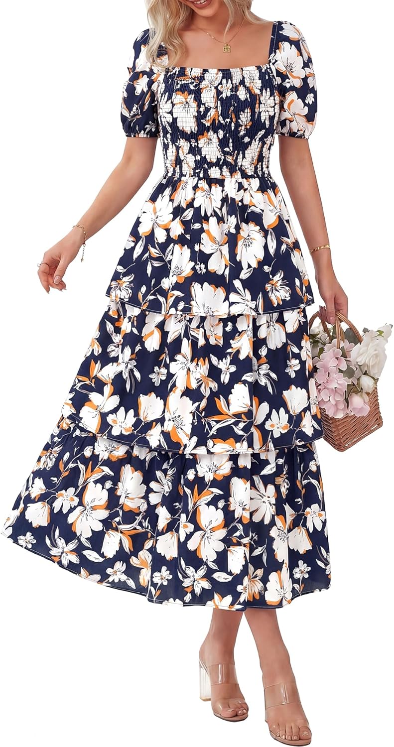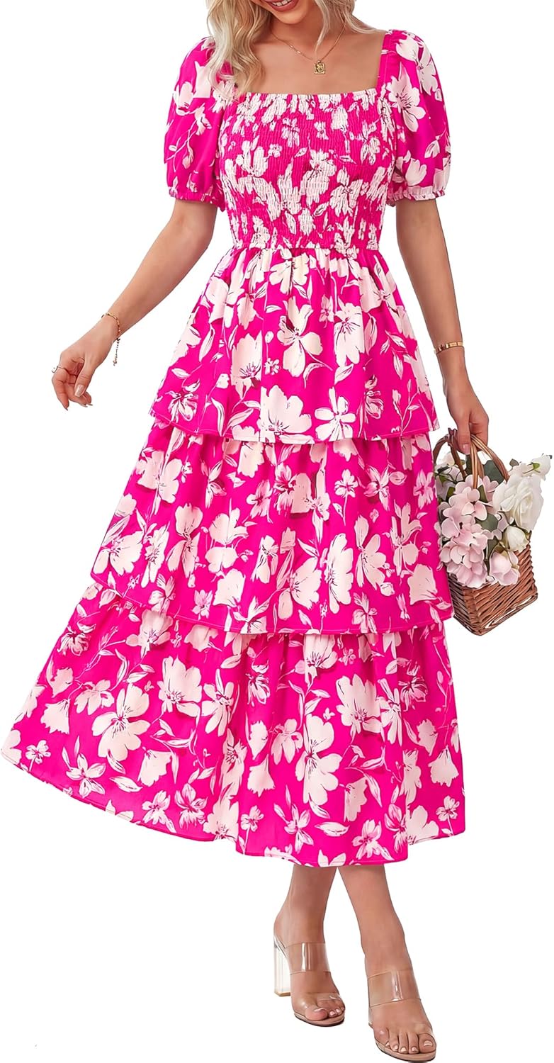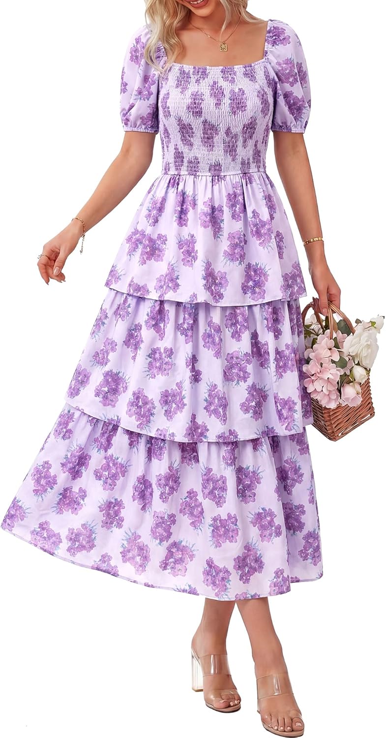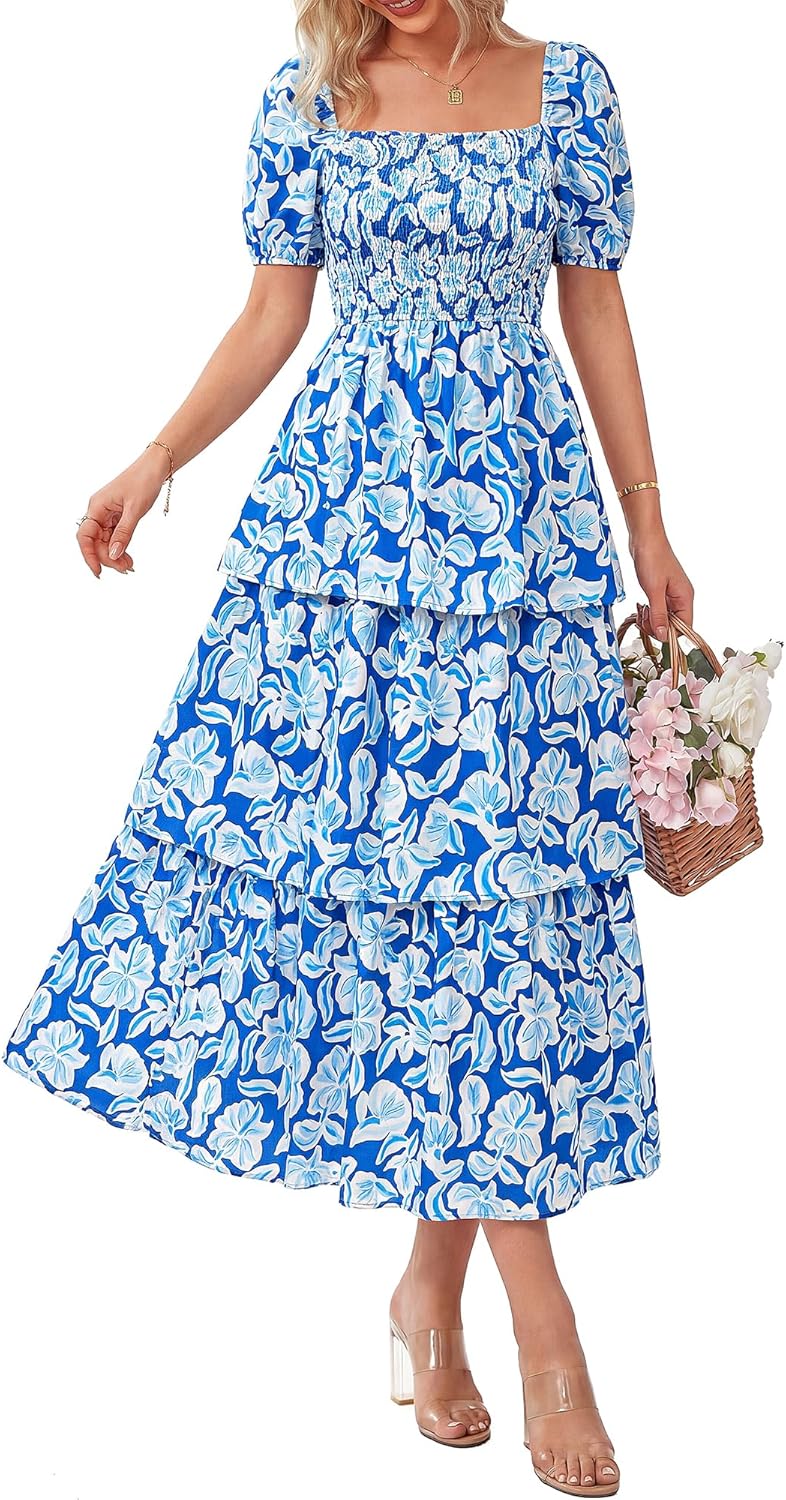 Brand: BTFBM Gender: Women, Ladies, Girls Clothing Type: Women's Casual Dresses Pattern: Floral Print, Dot Print Closure: Pull On Sleeves: Puff Short Sleeve Neckline: Square Neck Fitness: Relaxed Fit Waist Style: Elastic Waist Item Length: Maxi Length Style: Casual, Boho, Trendy Unique Designs: Stretchy Smocked Bodice, Ruffle Tiered Hem Season: Spring, Summer, Fall Occasion: Daily, Outdoor, School, Home, Dating, Vacation, Holiday, Cocktail, Party, Club, Beach, Baby Shower, Cruise, Graduation, Homecoming, New Year, Weddings, Valentines Day, Travel, Trip
